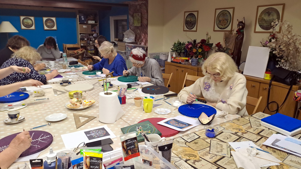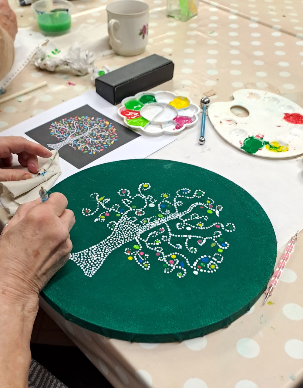 Maľba bodkovaním na plátne