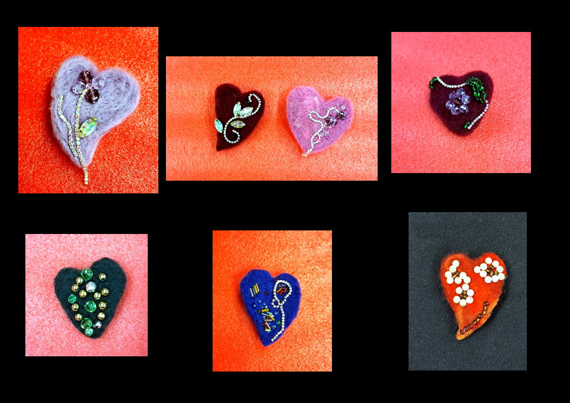 Suché plstenie - brošne s korálkami